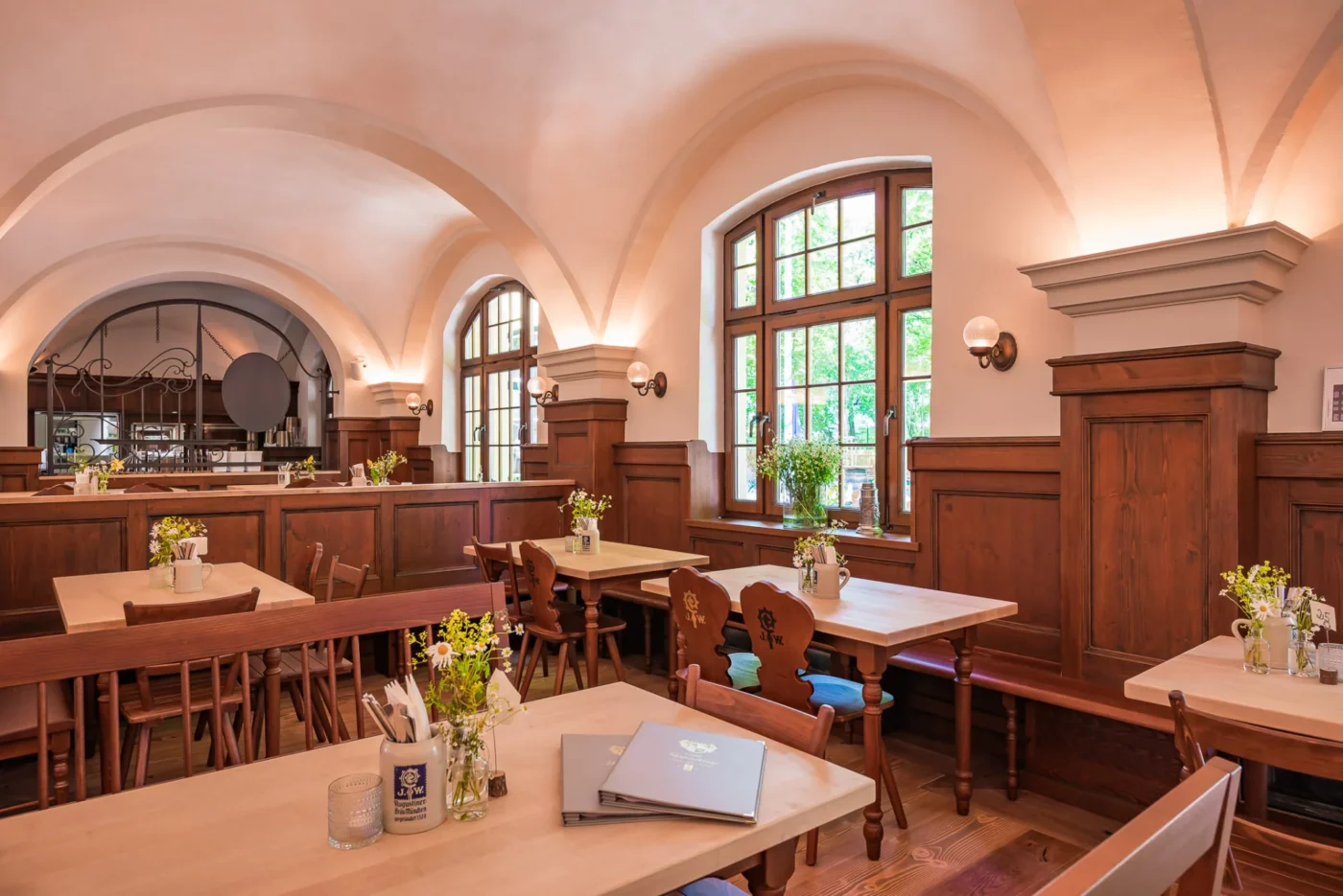 Nach dem Spiel geht es hinein in die festlich geschmückten Räume des Gutshofs: in das historische Gewölbe, den König-Ludwig-Festsaal oder das gemütliche Jagdstüberl. Hier werden weihnachtliche Menüs serviert – mit Ente und Schweinebraten vom Lugederhof, zartem Wildgulasch oder vegetarischen Kasspatzn. Jedes Detail ist liebevoll abgestimmt, jedes Gericht ein Stück bayerischer Genusskultur.